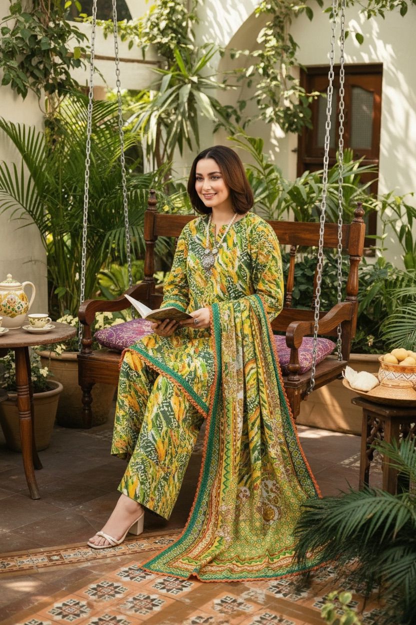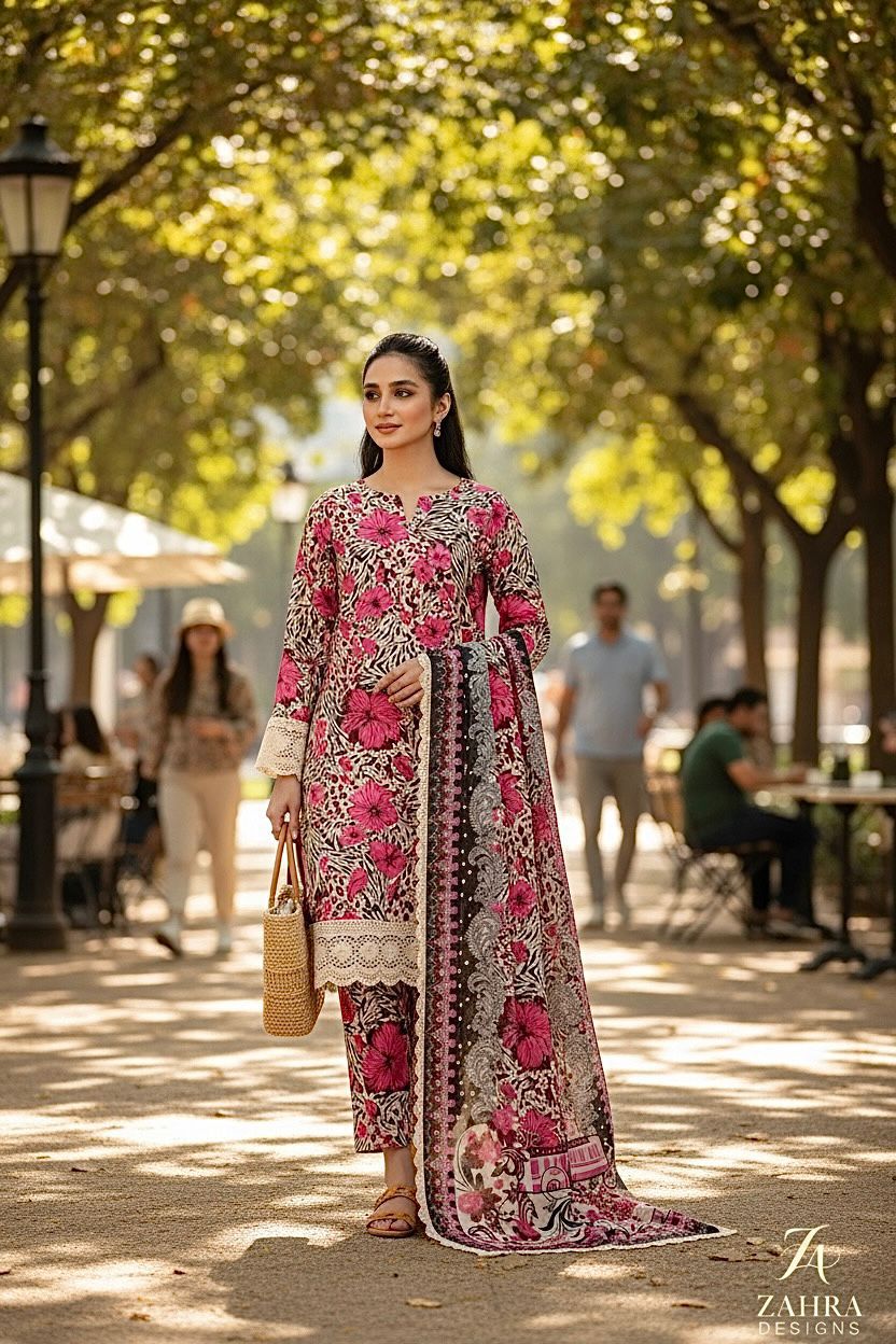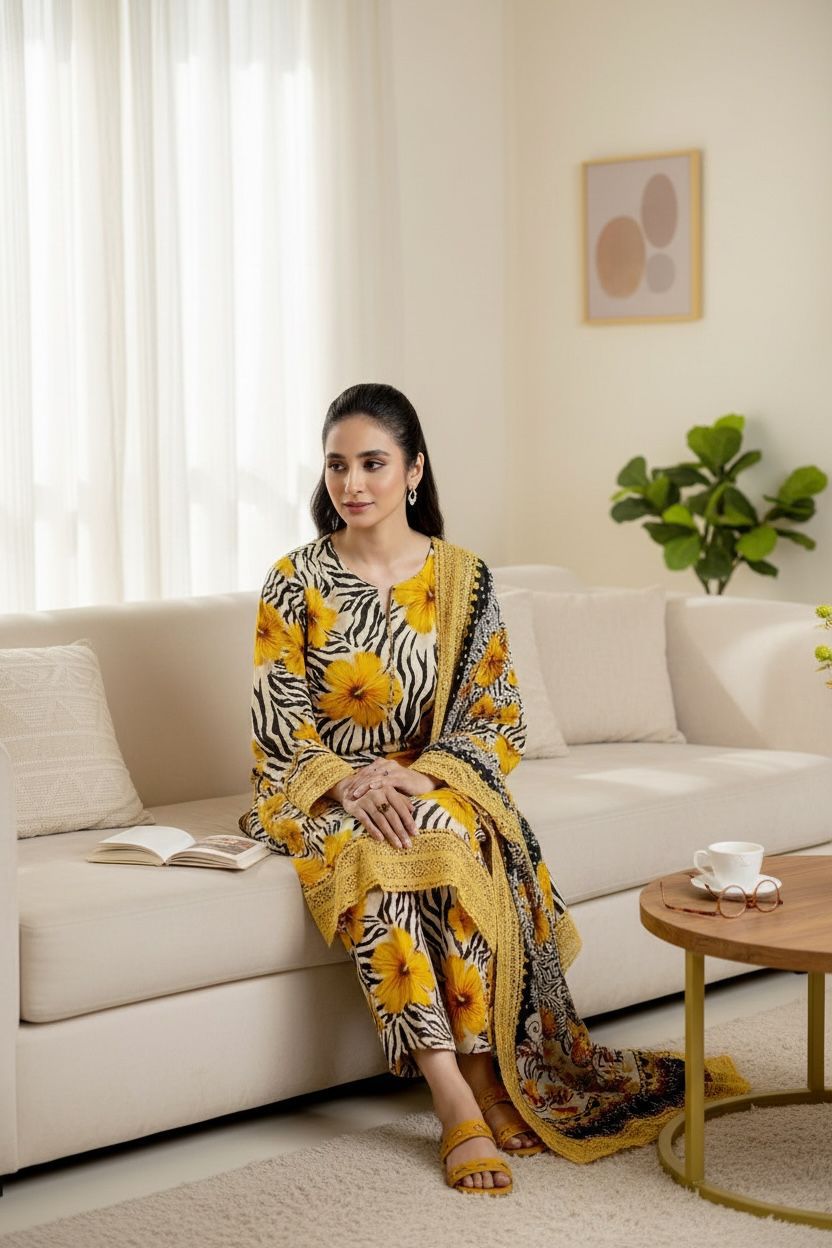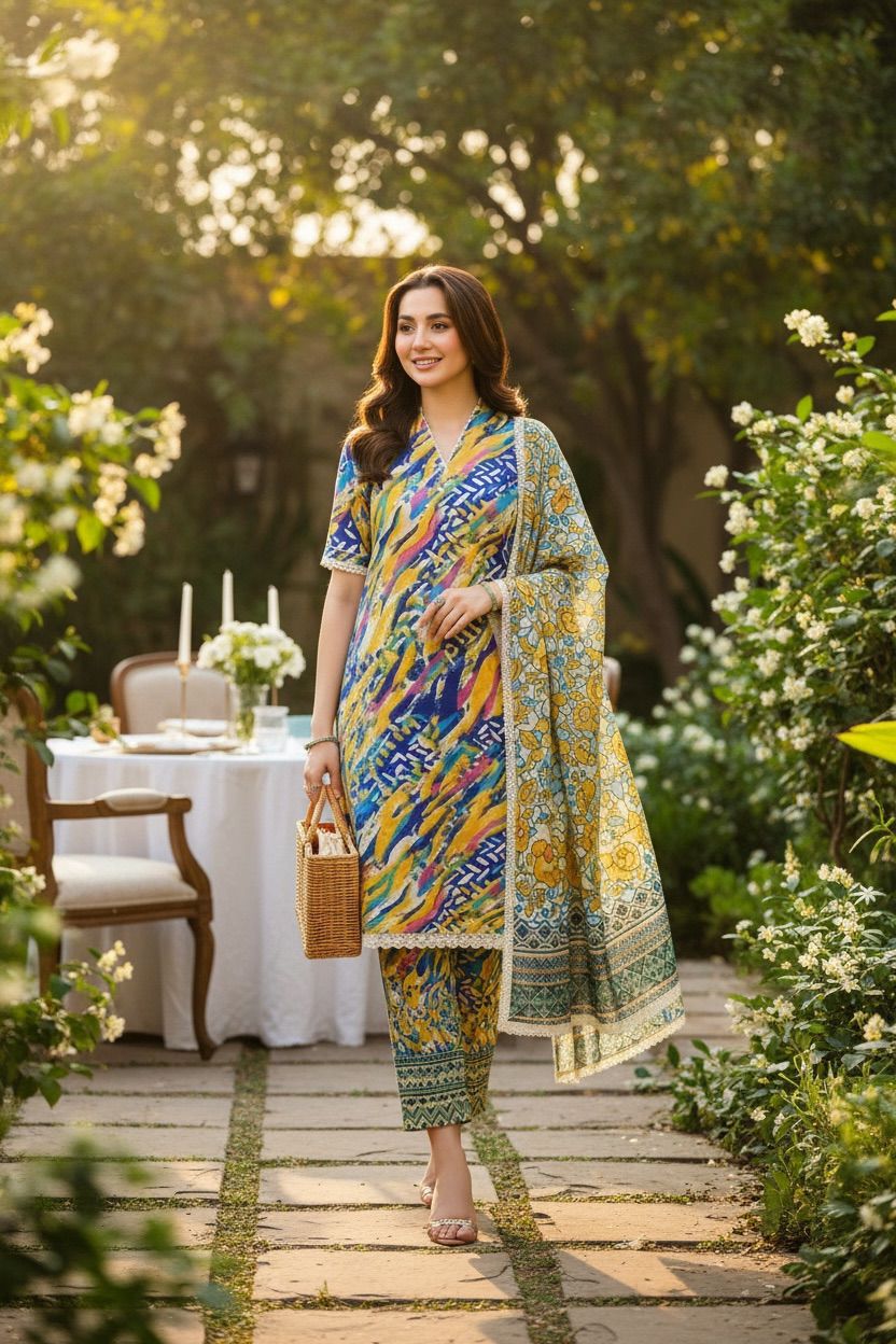 Completing the look is a digital print voil dobby dupatta, designed to elevate the outfit with vibrant prints and a soft, airy drape.