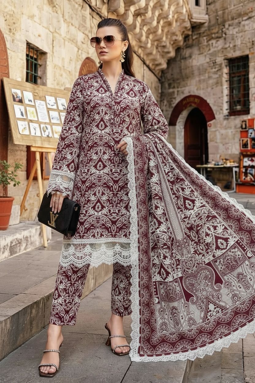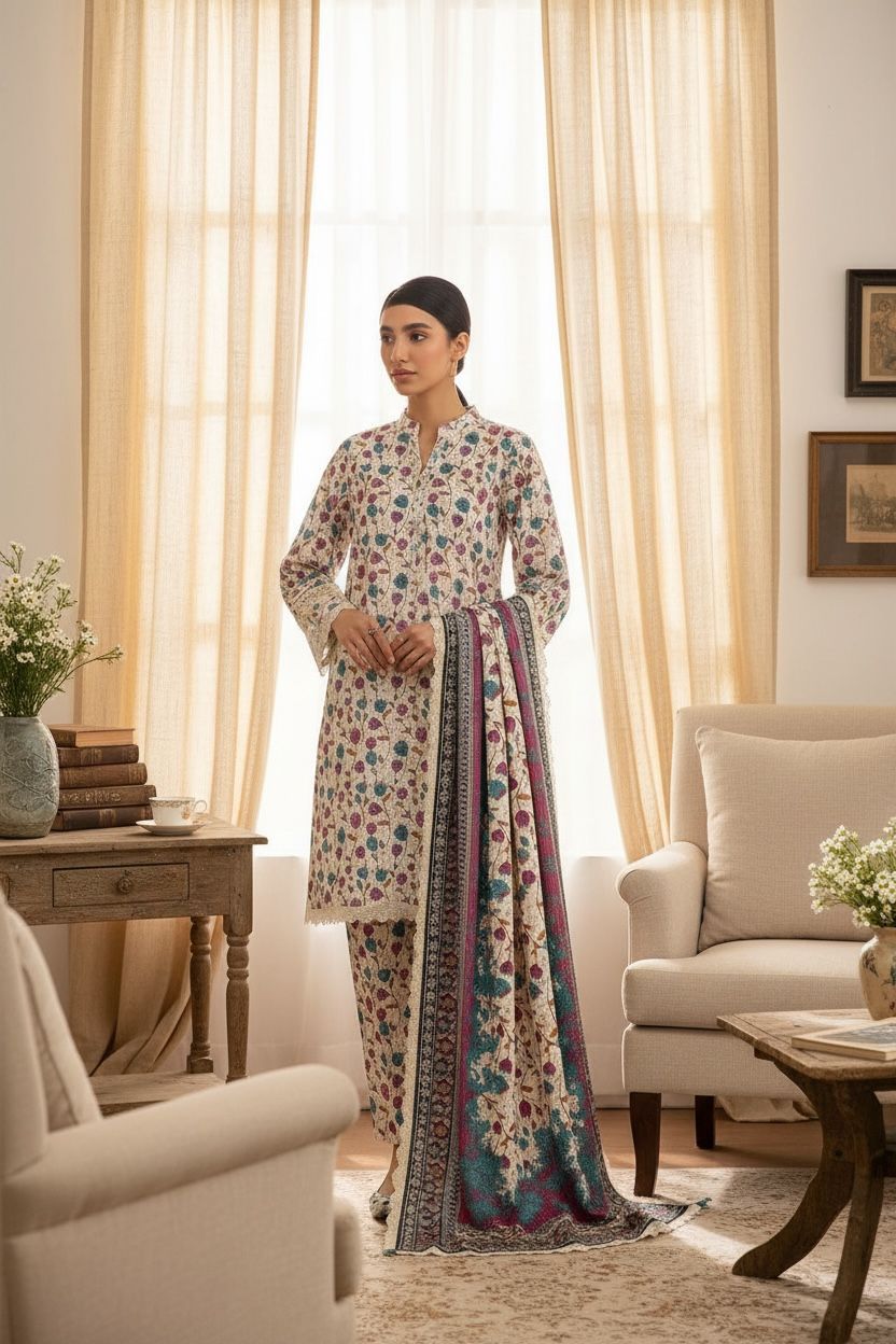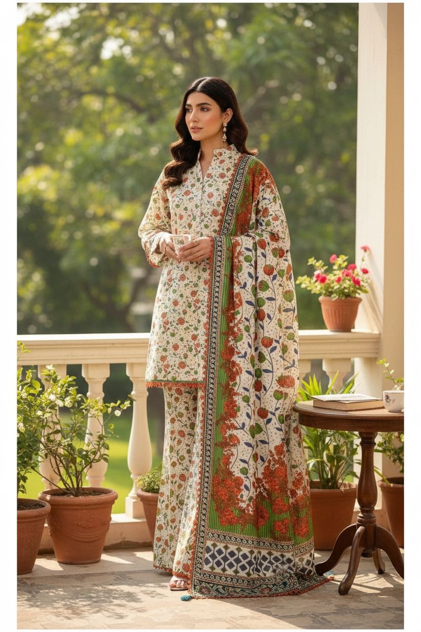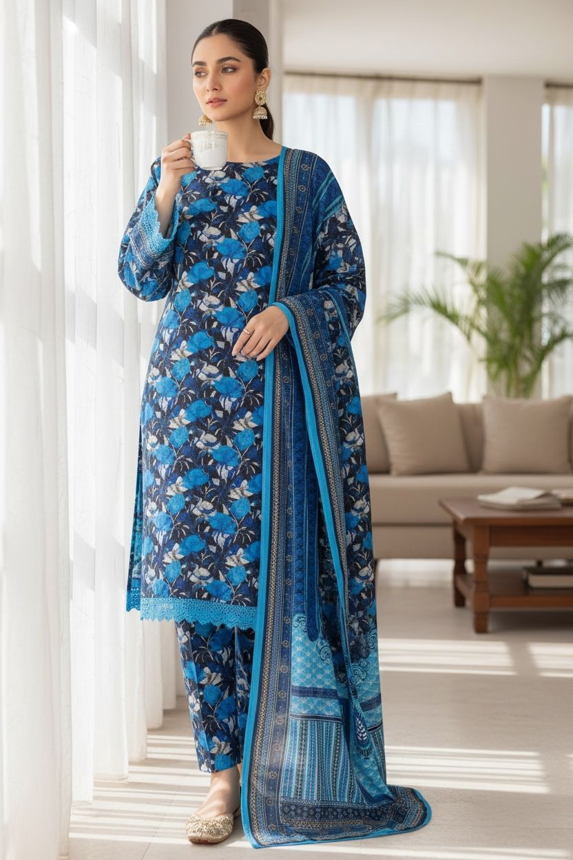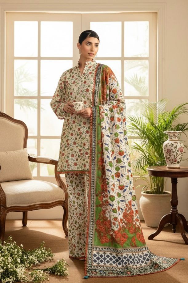 Completing the look is a digital print voil dobby dupatta, designed to elevate the outfit with vibrant prints and a soft, airy drape.