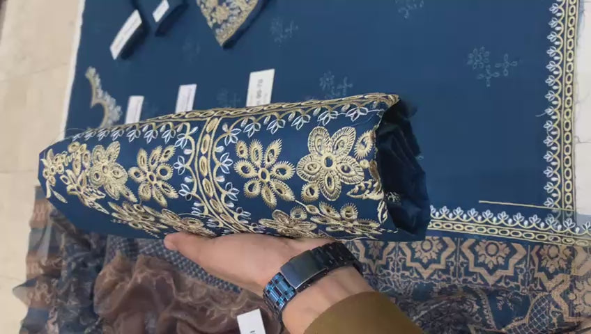 This beautifully designed suit features a heavily embroidered lawn shirt front, paired with full heavy embroidered sleeves, adding a rich and graceful appeal. The dyed lawn back ensures breathability and all-day comfort, perfect for warm weather wear.