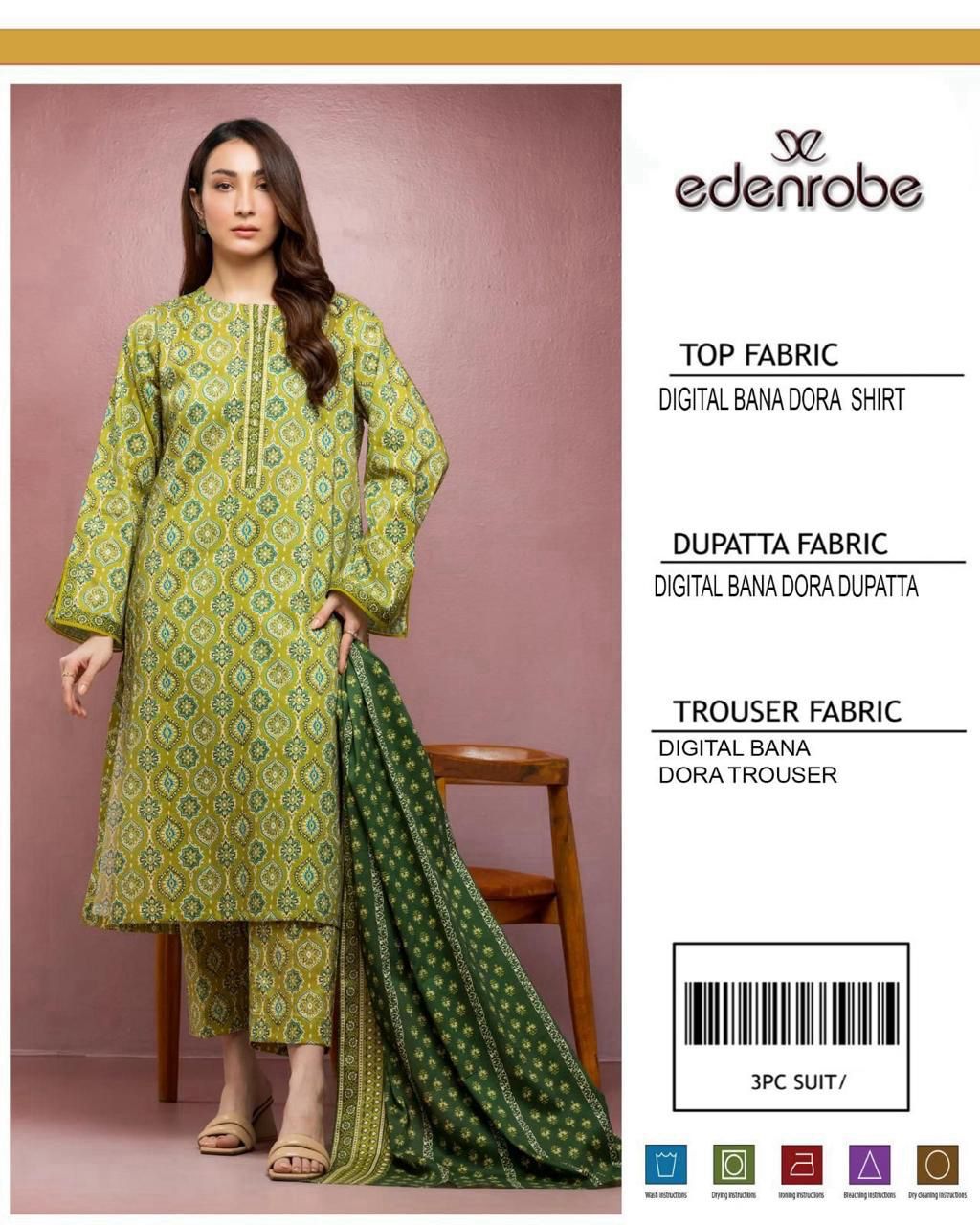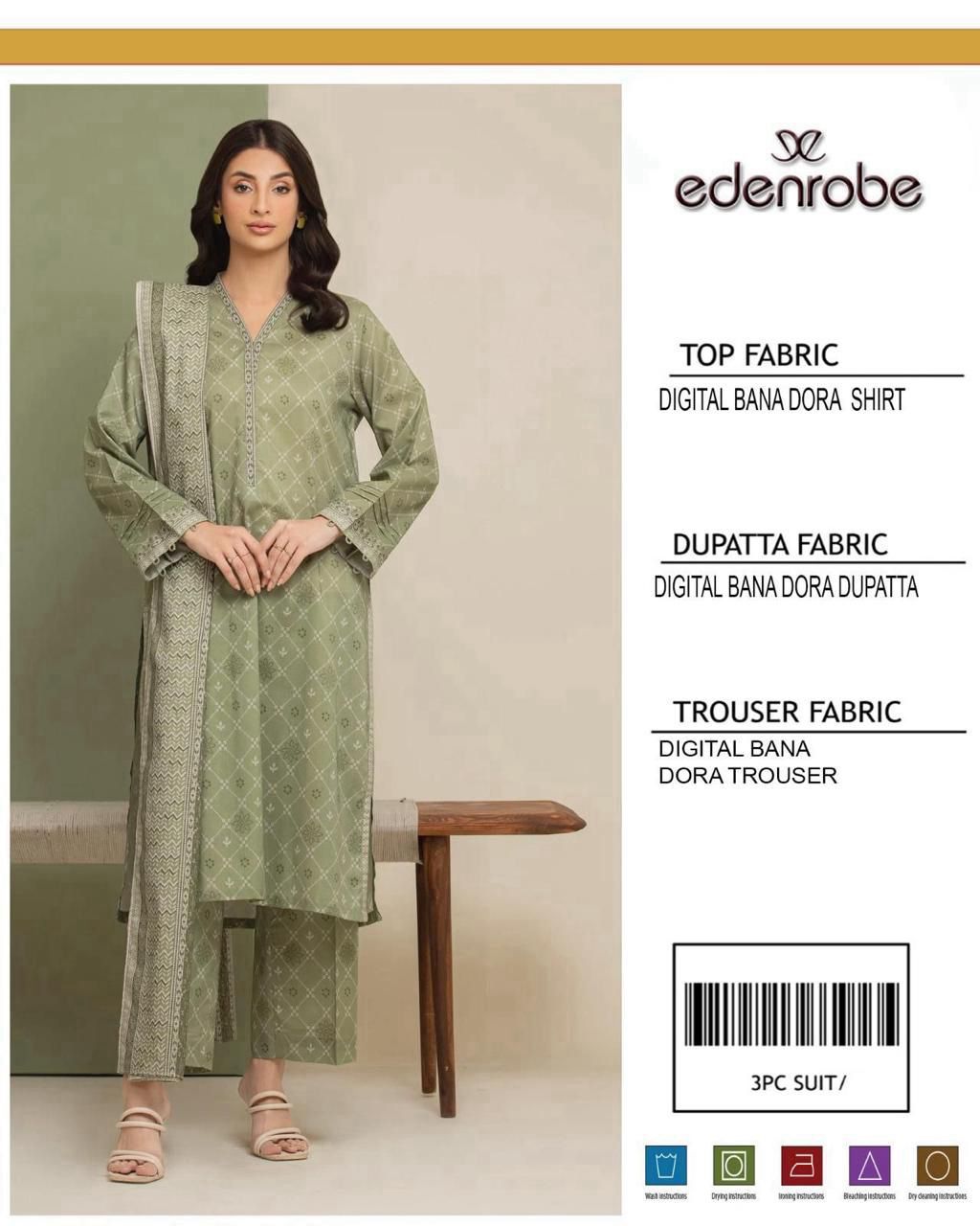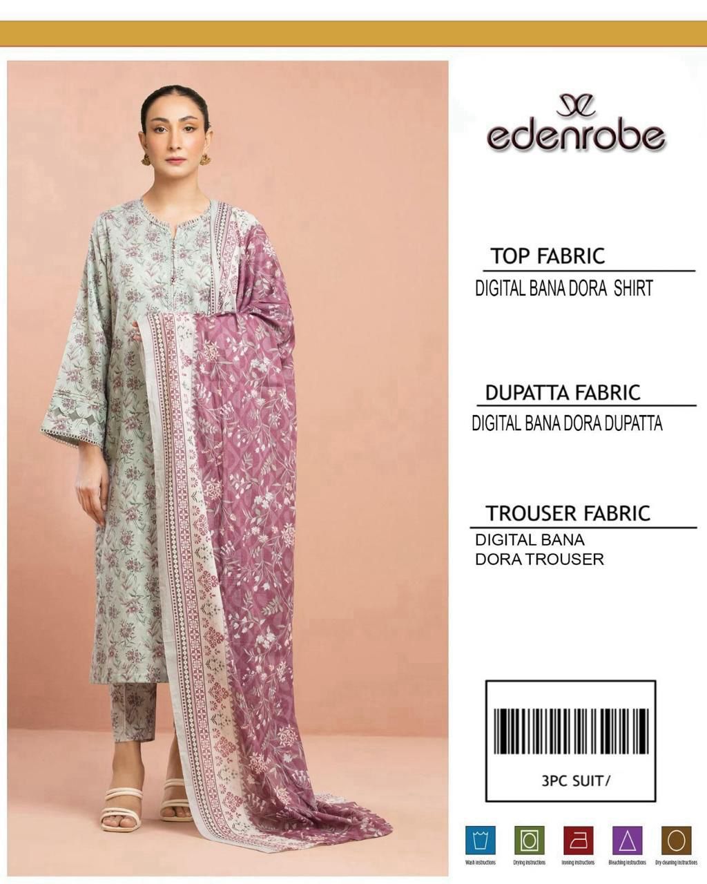 Edenrobe Brand New Arrival – Luxury 3PC Bana Dora Lawn Printed Collection