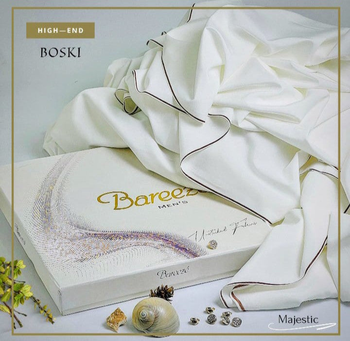 More than just a name, Bareezè Men High-End Boski is a pledge—a testament to unmatched credibility, trust, and innovation. Crafted through high-tech processing under international quality standards, this microfiber wash’n’wear Boski fabric promises comfort and refinement for the season ahead.