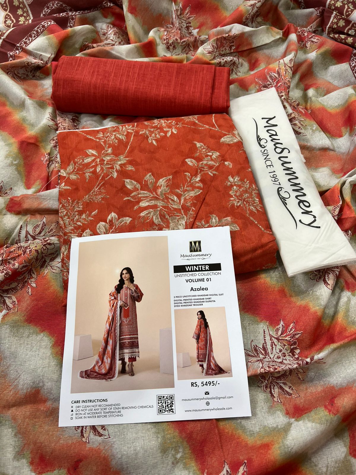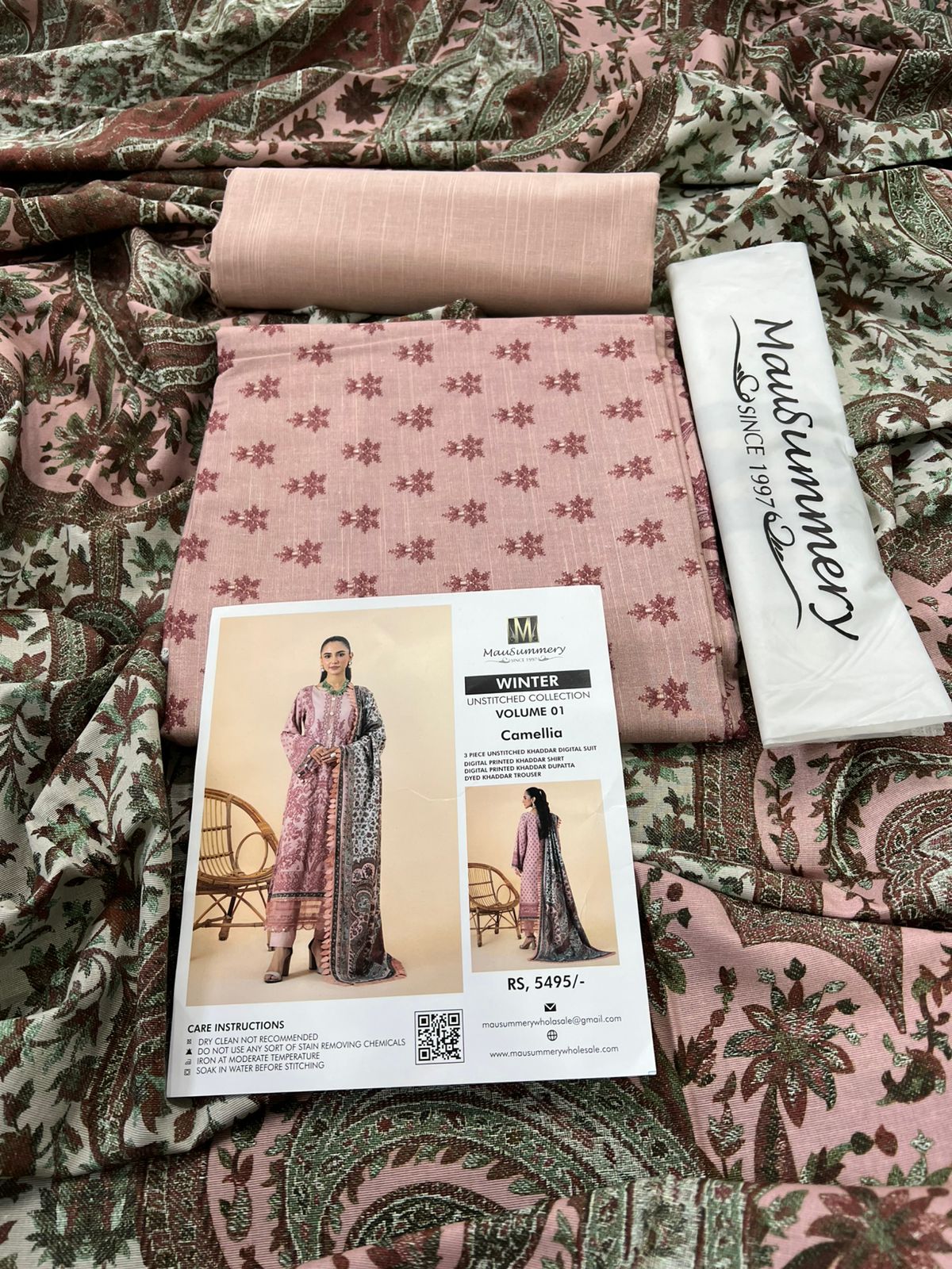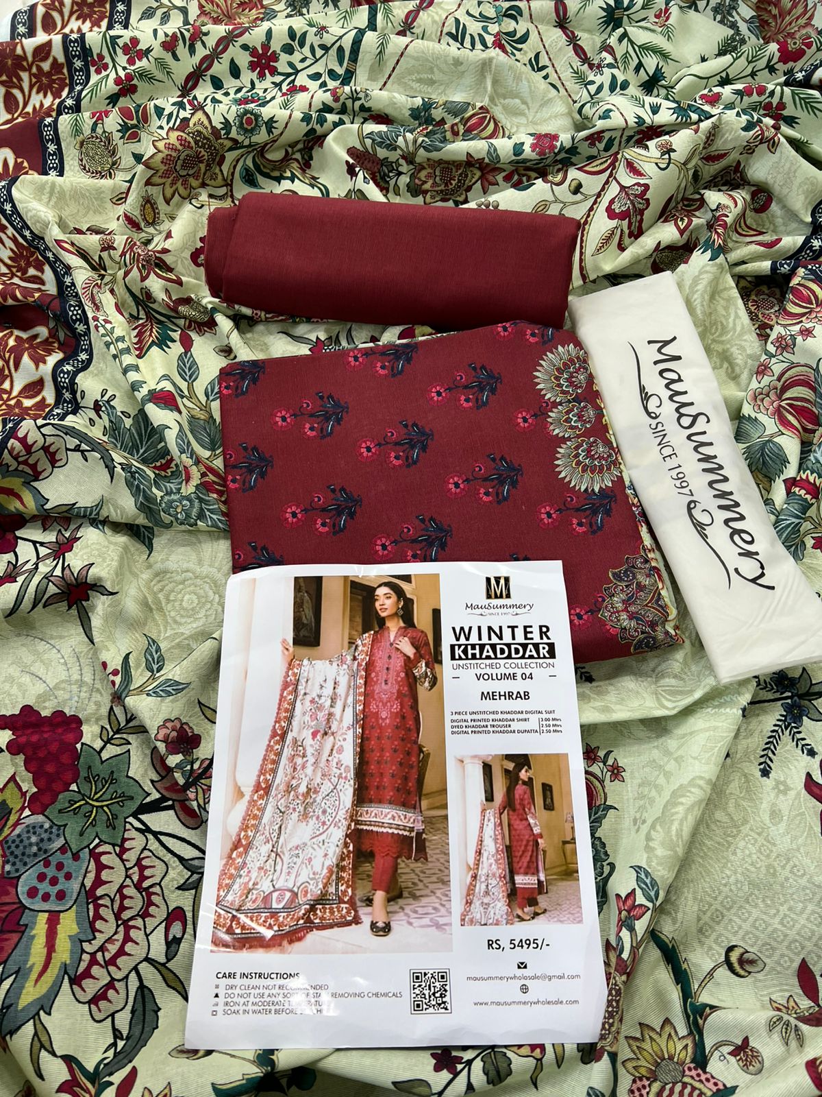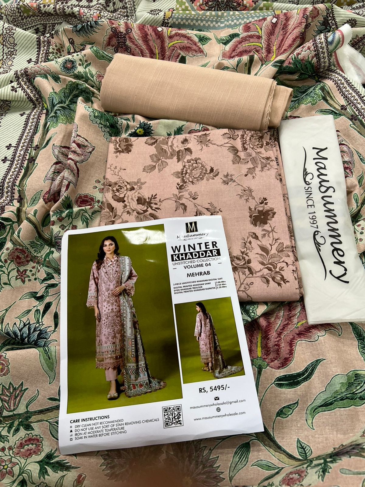 Discover warmth and elegance with the Mausummery Winter 2025 Collection. Crafted from premium Khaddar fabric, this 3-piece unstitched ensemble offers both comfort and style for the cold season.